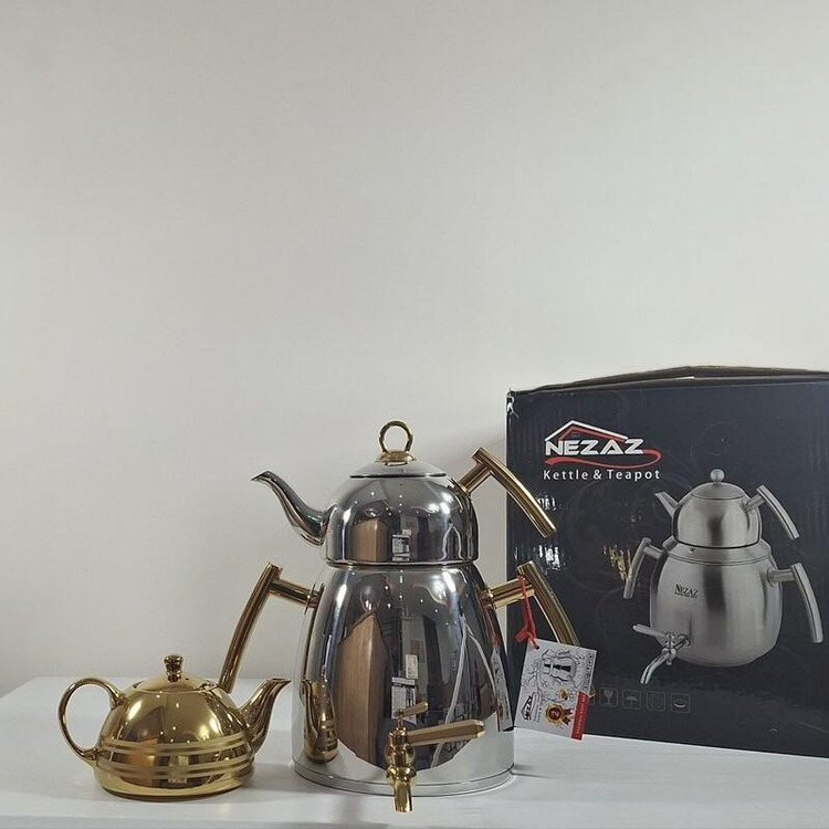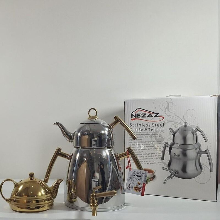 کتری و قوری جنس استیل درجه یک با کیفیت عالی مطابق تصویر ارسال به سراسر کشور با تضمین کیفیت استیل ضخیم طوری که بدلیل با کیفیت بودن اصلا سیاه و کدر نمیشود کف چدن یکپارچه برای جلوگیری از پوسیدگی ضمانت بازگشت کالا در صورت نامرغوب بودن