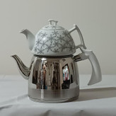 کتری استیل دسته بغل باکالیت با قوری چینی