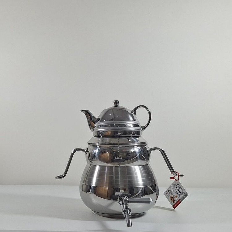 کتری و قوری دسته استیل با قوری کروم نزاز کد 4021