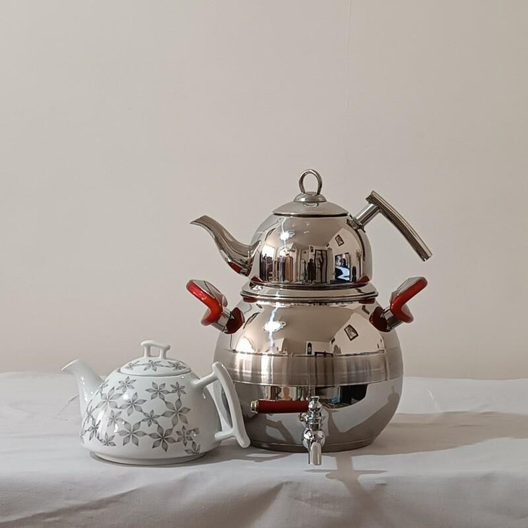 کتری و قوری جنس استیل درجه یک با کیفیت عالی به همراه یک قوری چینی اضافی مطابق تصویر ارسال به سراسر کشور با تضمین کیفیت استیل ضخیم طوری که بدلیل با کیفیت بودن اصلا سیاه و کدر نمیشود کف چدن یکپارچه برای جلوگیری از پوسیدگی ضمانت بازگشت کالا در صورت نامرغوب بودن